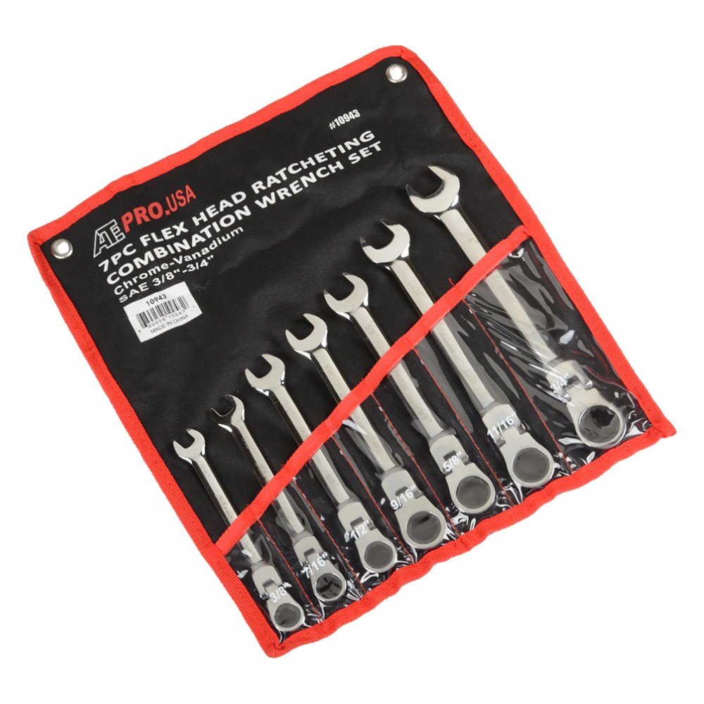 10943 Ratcheting Wrench, Flex Head, SAE, 3/8" to 3/4", 7 Piece Set